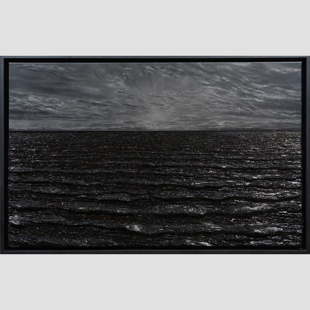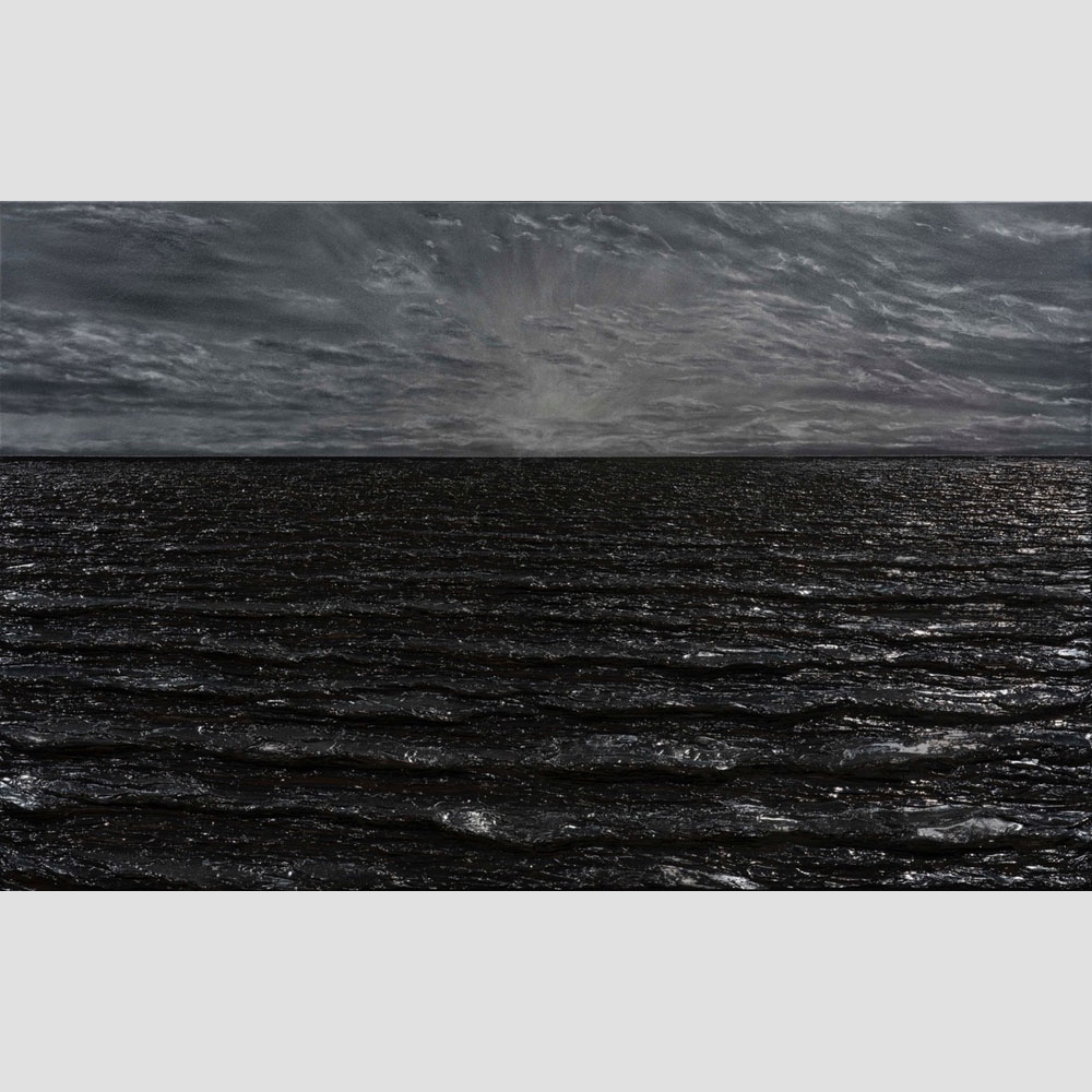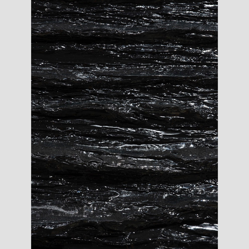 Bao Vuong was born in Vietnam at the end of the 70s. Barely a year old, he fled with his parents by sea. Like thousands of boat people, he and his family wandered, tossed about in refugee camps in pursuit of a land of welcome. The paintings of Bao Vuong are totally black, both realistic and abstract. It’s a projection of the nights in the open seas spent by his family on the run, the same nights that hundreds of thousands of refugees have lived through the centuries and still know each day—forsaken in the dark, without a clue. Darkness hints at imminent death and swallows all those who have sacrificed and lost everything worth living. Black paint awakens fears associated with exile, while reflections of light on the paint strokes represent shimmers of hope that give birth to a survival instinct, echoing the promise of a better world.