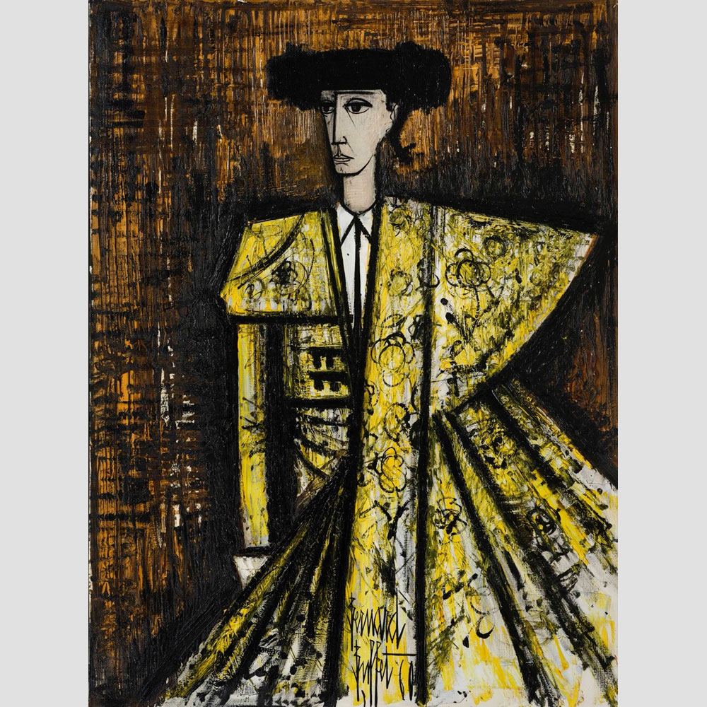 Bernard Buffet is recognised as a master in his art, and his paintings are collected in the most famous museums around the world. The Surugadaira Museum (Japan) is specially dedicated to his works and displays around 1,000 of his works. His paintings are strong and breathtakingly unforgettable. Bernard Buffet’s style can be recognised among others by a network of “dry” straight lines grey faces, wrinkled foreheads, scarce straight hair, tensed hands. His characters seemed crucified.