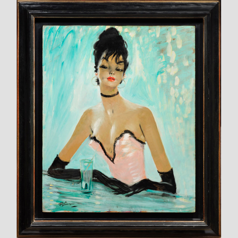 Domergue a l’art de mettre en lumière le côté léger et pétillant de la jolie femme telle qu’on l’imagine. Sa virtuosité et l’élégance de son pinceau l’inscrivent dans la lignée des Fragonnard et des Watteau, artistes qui ont au XVIIIème siècle contribué à fixer les canons de la beauté de leur époque.